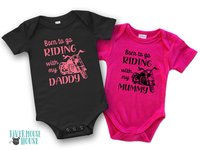 Born to go riding motorcycle baby bodysuit, custom personalised to suit