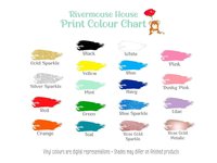Please see colour chart via image gallery. Request 1 or 2 print colours. Black or white print will be used by default.