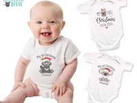 Tassie Devil First Christmas personalised baby bodysuit, Cute Australian animals Xmas gift
